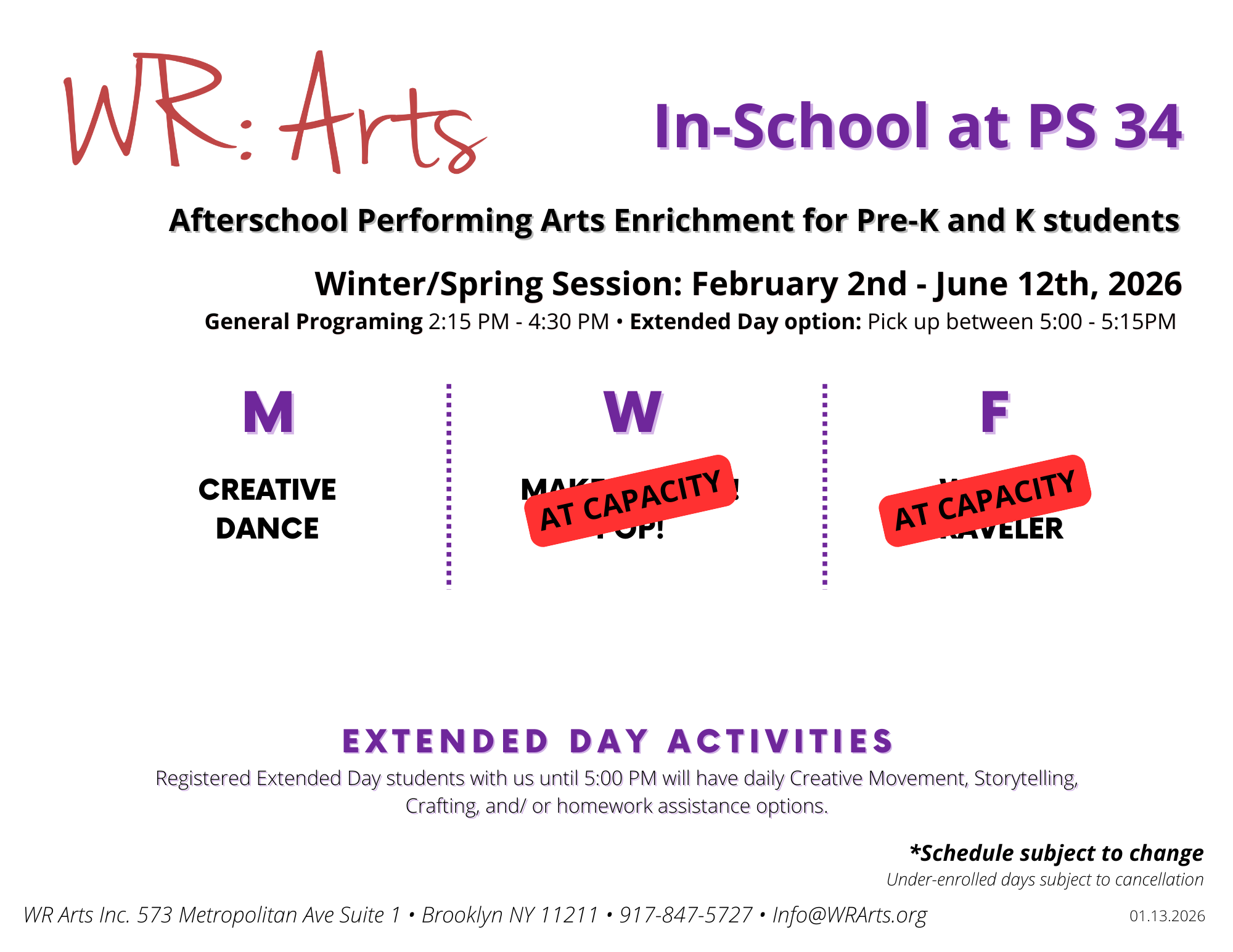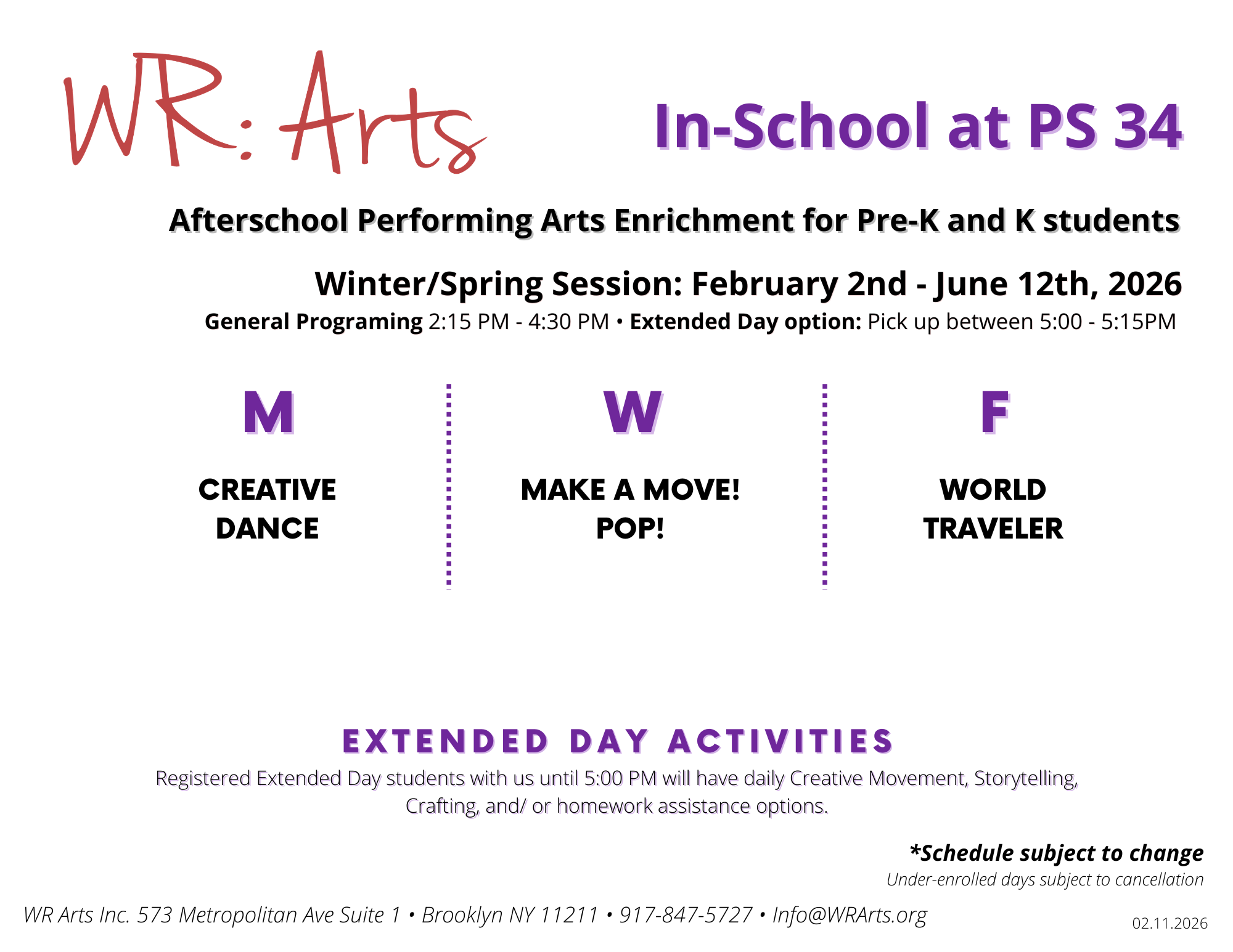 Afterschool arts enrichment programming for PK and K right in PS 34!